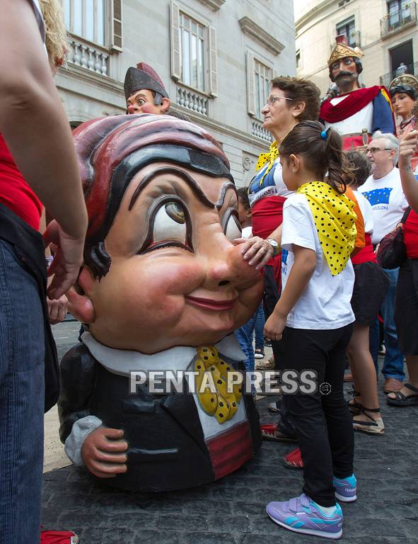 Barcelona, Spain, SEP 24, 2016: Performers demonstrate diverse giants before Parade of Dwarfs and Giants, one of the main programs of La Merce in Barcelona, Spain on September 24, 2016. La Merce is the annual festival of the city of Barcelona to celebrate the Catalan culture that honors Barcelona's patron saint, the Virgin of Mercy.
