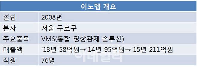 VMS는 서울 노원·서초구 같은 지방자치단체나 야구장, 대학, 발전소 등에 설치된 수십, 수백대의 CC(폐쇄회로)TV를 통합해 관제할 수 있는 시스템을 뜻한다. 전국 지자체의 절반 이상과 한국은행, 대만 국제공항, 말레이시다 당가베이 리조트, 일본 도쿄돔 등 통합 영상관제센터 속에는 이노뎁의 솔루션이 들어 있다.