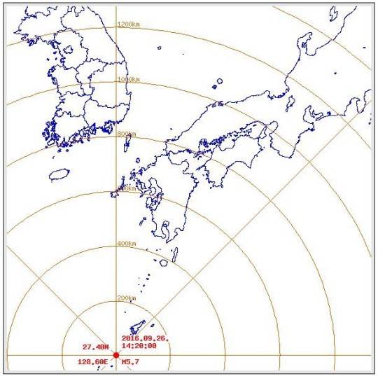 26일 오후 2시20분쯤 일본 오키나와 본토 근해에서 리히터 규모 5.7의 강진이 발생했다.