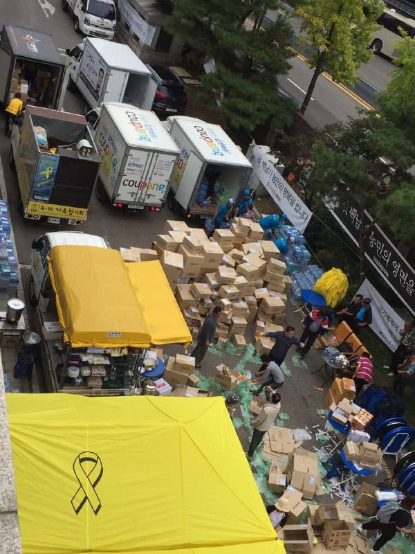 투쟁본부 관계자는 "3000여 개가 넘는 물품이 배송됐다"며 "줄지어 물건을 내리느라 후원물품 정리에만 반나절이 걸릴 정도였다"고 말했다.