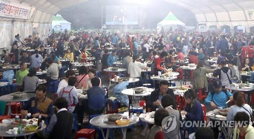 (부산=연합뉴스) 조정호 기자 = 1일 부산 기장군 철마면 장전천에 열린 '제10회 철마 한우 불고기 축제'를 찾은 시민들이 한우 불고기를 맛보고 있다. 철마 청정 농축산물을 맛보고 다양한 농촌체험행사도 즐길 수 있는 이 축제는 3일까지 계속된다. 2016.10.1