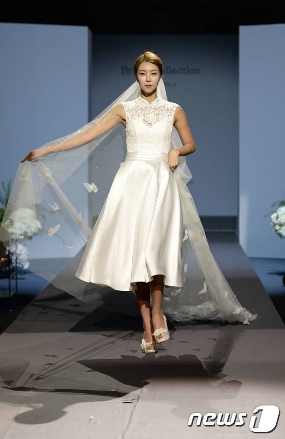 (서울=뉴스1) 안은나 기자 = 2일 오후 서울 강남구 삼성동 소노펠리체 컨벤션에서 열린 듀오웨드 제1회 브라이덜페어 웨딩박람회 웨딩드레스 패션쇼에서 모델들이 워킹을 하고 있다. 2016.10.2/뉴스1