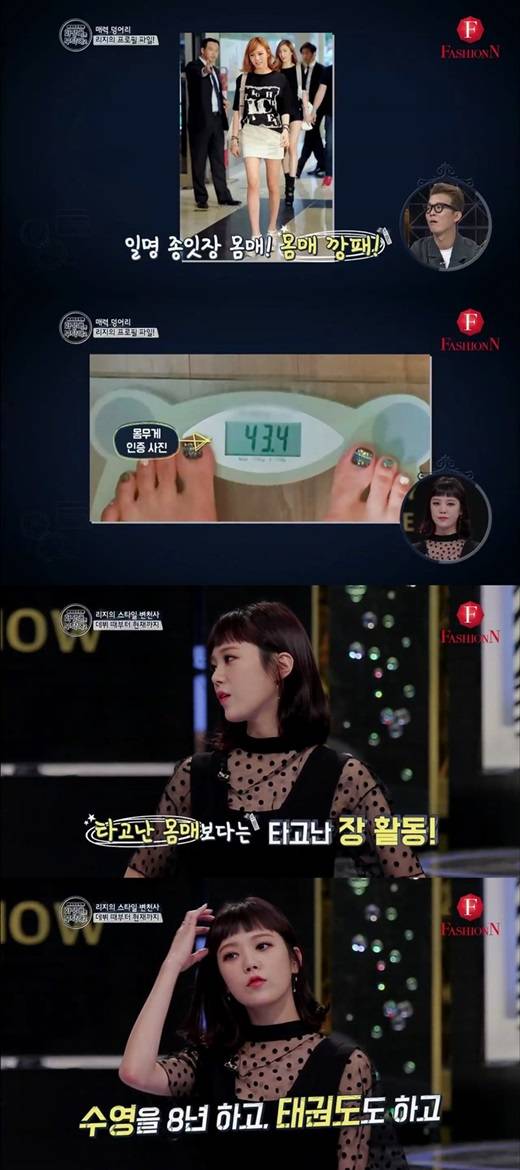 평소 가녀린 몸매로 유명한 리지는 방송에 앞서 진행된 촬영 중 뷰티 프로필 코너에서 자신이 찍은 체중계 사진을 공개하며 43kg 몸무게를 인증했다.