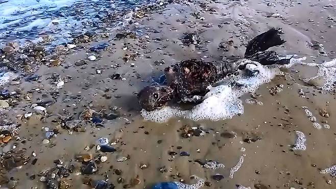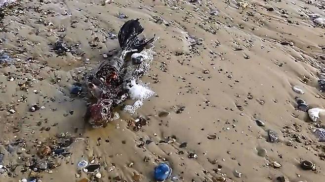 현지 시간으로 지난 4일, 영국 미러는 영국 그레이드 야머스의 한 바닷가에서 촬영된 것으로 전해진 이 사체에 대해 보도했습니다.