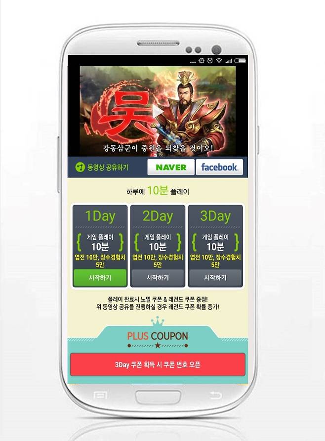 이번에 쿠폰이 추가된 게임은 'K4: 약탈의 시대'로 3일차까지 진행되는 ‘게임 플레이 10분’ 미션을 완료하면 매일 ‘10만 엽전’과 ‘5만 장수 경험치’를 지급한다. 아울러 미션을 모두 완료한 유저에게는 ‘100만 엽전’, ‘진급석 100개’, ‘혼옥 500개’, ‘20만 장수 경험치’로 구성된 플러스 쿠폰을 추가로 제공한다. 쿠폰은 보상 구성에 따라 ‘노멀’과 ‘레전드’로 나뉘는데, 루팅에서 제공하는 ‘K4: 약탈의 시대’ 동영상을 본인의 SNS에 공유하면 ‘레전드’ 당첨 확률이 더욱 올라간다.