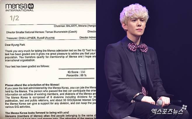 [엑스포츠뉴스 김주애 기자] 그룹 블락비의 박경이 '멘사' 통과 인증서를 공개했다.