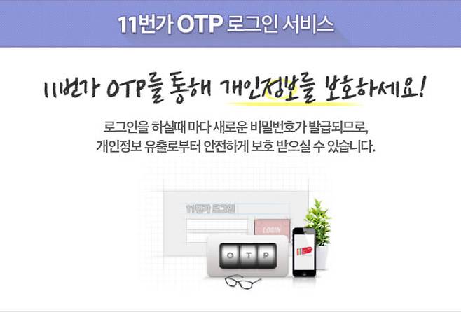 11번가는 가입 고객에게 OTP 로그인 서비스를 무료 제공한다. PC 웹사이트에서 신청한 후 모바일 앱에서 OTP 로그인 서비스를 실행하면 이용할 수 있다.