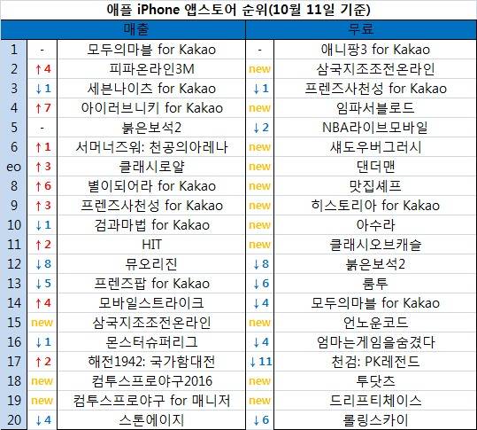 ◆애플 매출 순위-컴프야, KBO리그 포스트시즌 효과 '톡톡'