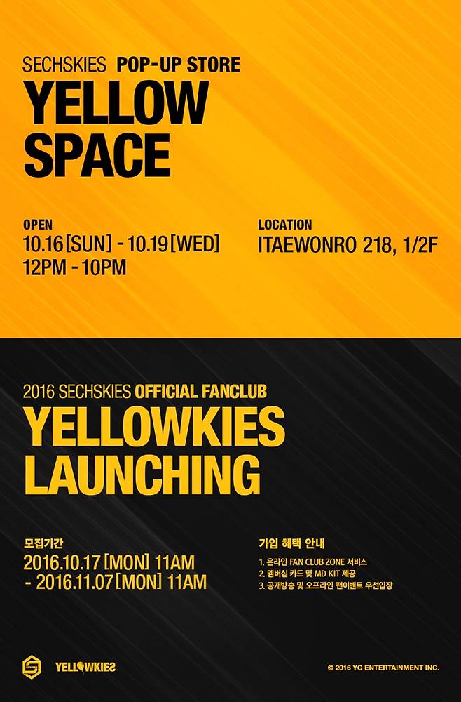 한편 오는 17일부터는 젝스키스 공식 팬클럽 'YELLOWKIES'의 모집도 시작된다. 이와 관련 13일 젝스키스 공식 홈페이지(http://yg-sechskies.com)에는 팬클럽을 모집을 알리는 프로모션 페이지가 오픈된다. 모집기간은 오는 17일 오전 11시부터 11월 7일 오전 11시 까지다. 가입 관련 상세 정보는 추후 젝스키스 공식홈페이지를 통해 공지될 예정이다.