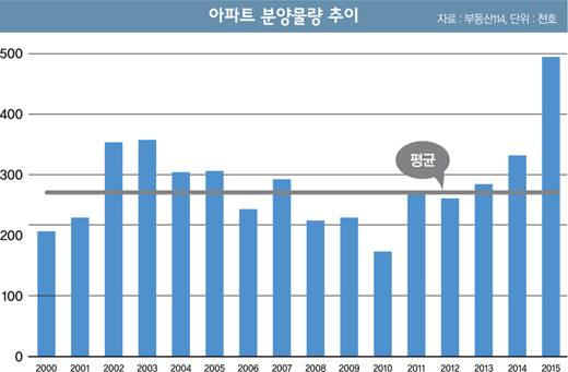 2017~2018년 아파트의 입주물량 합계는 76만1012가구로 예상된다. 2007~2008년 정부가 분양가를 규제하기 위해 분양가상한제를 시행하면서 건설사들이 신규분양을 앞당겨 인허가가 급증했는데 당시 입주물량이 63만4224가구였다. 2017~2018년은 이때보다 12만6788가구(19.9%) 더 많다. 윤지해 부동산114 연구원은 “내년에는 공급과잉의 부작용이 발생할 가능성이 높다”며 “사전 대응과 모니터링이 필요한 시점”이라고 말했다.