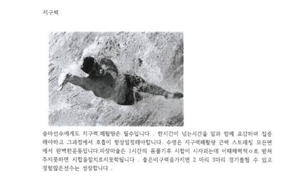 정씨는 승마선수에게 필요한 체력 요소로 근력, 균형감, 유연성, 악력, 지구력 등을 꼽으면서 각각 요소에 대한 사진과 설명을 덧붙여 A4용지 3장 분량으로 정리했다.