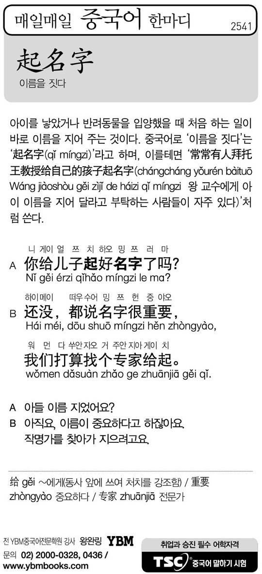 [매일매일 중국어 한마디] 이름을 짓다