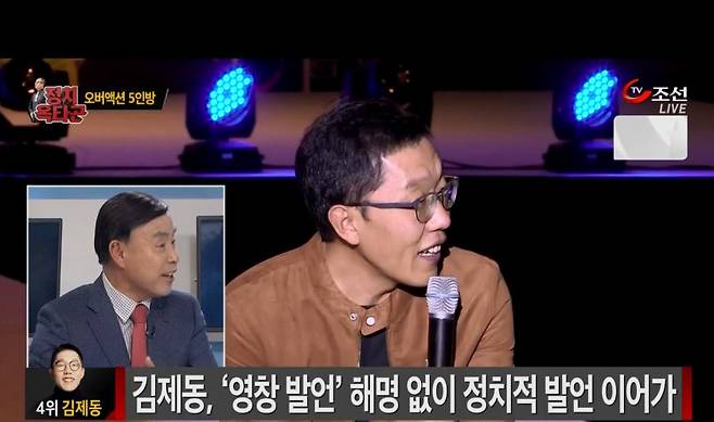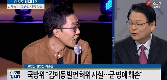 | ▲ 김제동 씨가 군 명예를 훼손했다는 민영삼 사회통합전략연구원장. TV조선 <이것이 정치다>(10/7) 화면 갈무리 |