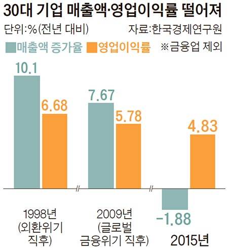 김윤경 한경연 부연구위원은 “3개 연도의 경영지표를 단순 비교하긴 어렵지만 극심한 경제위기를 겪었던 98년이나 2009년보다 못했다는 건 시사하는 바가 크다”고 말했다.