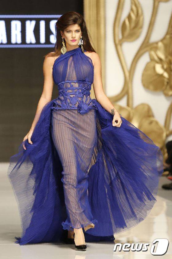 (레바논 AFP=뉴스1) 우동명 기자 = 18일(현지시간) 레바논에서 열린 ‘라 모드 어 베이루트’ 패션위크에서 모델이 디자이너 푸아드 사르키스의 작품을 선보이고 있다.
