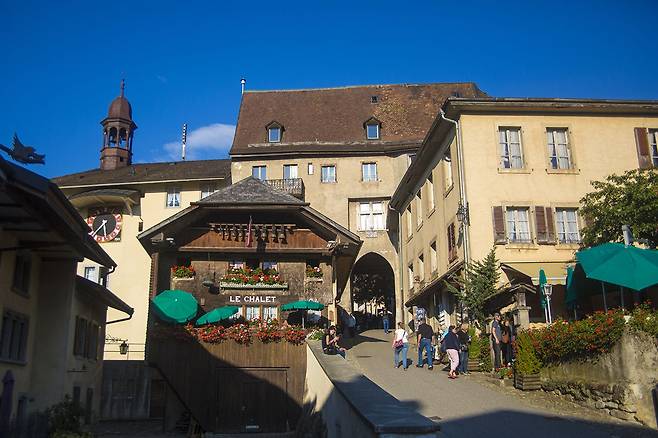 초원 위로 우뚝 솟은 그뤼에르 성이 특히 아름다웠다. 13세기 지어진 이 성은 드는 길부터 로맨틱했다. 언덕 위 마을로 들어간 다음 중세풍의 아담한 카페거리를 거슬러 올라야 성에 닿을 수 있었다. 카페거리 바깥쪽은 그뤼에르 지역이 한눈에 내려다보이는 성곽길이었다. 귀족 가문이 대대로 살았다는 성 안에는 옛 가구와 갑옷, 방어시설 등 유물이 빼곡했다. 주민 110명이 옹기종기 모여 사는 이 마을은 국가주요유산으로 지정돼 있어 자동차가 드나들 수 없다. 기꺼이 걸을 준비가 된 사람만 찾기 때문에 언제나 조용하고 여유로운 분위기라고 한다.
