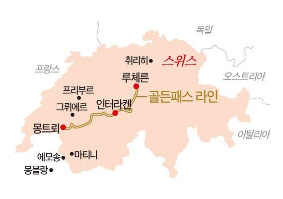 「스위스에서 여러 도시를 여행하려면 ‘스위스 트래블 패스(Swiss Travel Pass)’를 이용하는 게 편리하다. 티켓 한 장으로 철도·버스·유람선 등의 대중교통을 무제한 이용할 수 있다. 각종 케이블카와 박물관 할인 혜택도 포함돼 있다. 스위스 트래블 패스는 기간별로 3·4·8·15일권 네 종류가 있다. 어른 기준 3일권(2등석)은 210스위스프랑(한화 약 24만원)이다. 무료 애플리케이션 ‘SBB Mobile’도 유용하다. 열차·버스·케이블카 등 대중교통 길 정보를 실시간으로 얻을 수 있다. 자세한 여행 정보는 스위스정부관광청 홈페이지(myswitzerland.com/ko)를 참고하면 된다.」