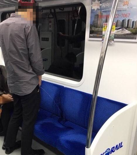 지하철 1호선 좌석에 소변 보는 남성 사진 공개 '충격'