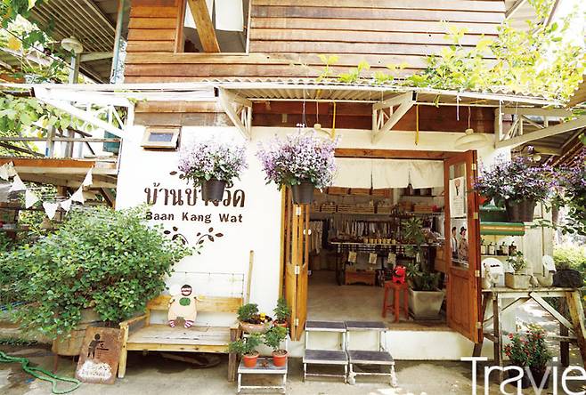 ‘사원 앞에 있는 집’이라는 뜻의 반캉왓은 왓우몽(Wat Umong) 지역 왓람펑(Wat Ram Poeng) 바로 맞은편에 위치한다. 태국 고산지대 부족 마을에서 영감을 받았다는 나타웃 룩프라싯은 공동체의 빠른 성장과 큰 이익이 아니라 천천히 함께 발전하면서 결속력이 강한 커뮤니티를 서로가 이뤄 내며 사는 것이 이 공동체 마을의 목표라고 설명한다. 현대 도시에서도 시골 마을의 라이프스타일을 따라 큰 욕심을 부리지 않고도 사업과 공유가 동시에 가능하다는 믿음이 이 마을의 시작이었다.