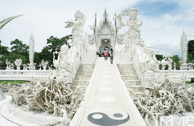 ‘치앙라이’ 하면 떠오르는 대표적인 예술 작품은 화이트 템플(The White Temple), 왓렁쿤(Wat Rong Khun)이다. 태국의 유명한 건축가이자 불교 화가인 찰름차이 코싯피팟(Chalermchai Khositpipat) 교수가 100% 자비로 만든 사원이다. 사원은 두 눈을 의심할 정도로 모든 것을 흰색으로 뒤덮었다. 이곳에서 흰색은 부처의 지혜와 순수, 나아가 열반(涅槃)의 세계를 상징한다.