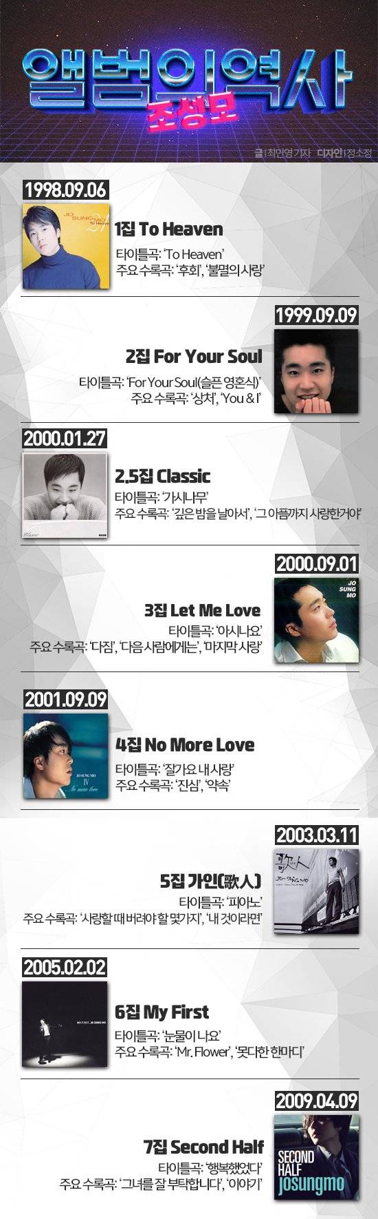 6집 활동을 마치고 병역 의무를 이행한 조성모는 전역 이듬해인 지난 2009년 4년 만에 새 정규앨범 ‘세컨드 하프(Second Half)’를 발표했다.