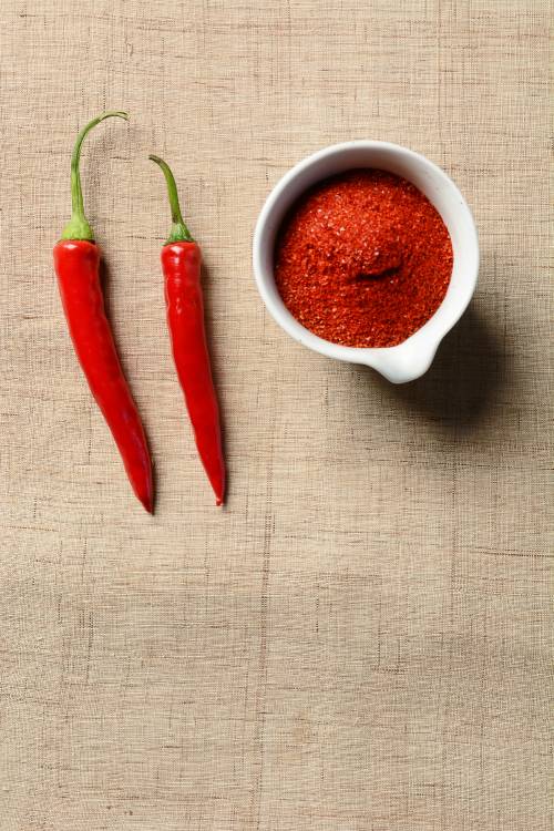 고춧가루는 비타민A의 좋은 원천일 뿐만 아니라 천연 발열제로써, 우리의 몸속에서 열을 발생시키고 신진대사를 촉진한다. 또한 식욕 억제와 몸속에 지방이 저장되는 것을 막는 데 도움을 준다.