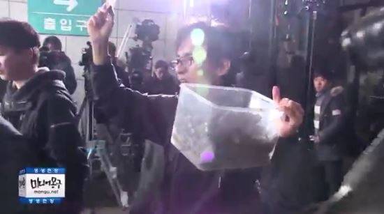 최순실 출두 현장에서 분노의 개똥 투척한 시민 영상