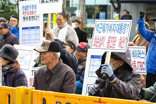 이들은 전날 같은 시각에도 같은 곳에서 같은 내용의 집회를 열고 JTBC가 박근혜 대통령을 흔드는 왜곡보도를 하고 있다고 주장했다.