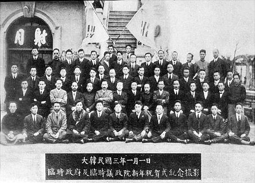 | ▲ 대한민국 3년(1921년) 1월 1일 임시정부 요원들의 단체사진. |