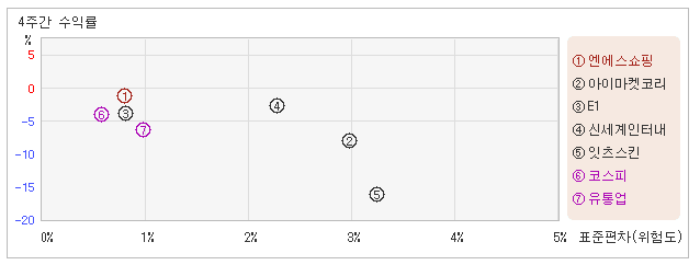 | 엔에스쇼핑 | 0.8% | -1.2% | -1.5 |