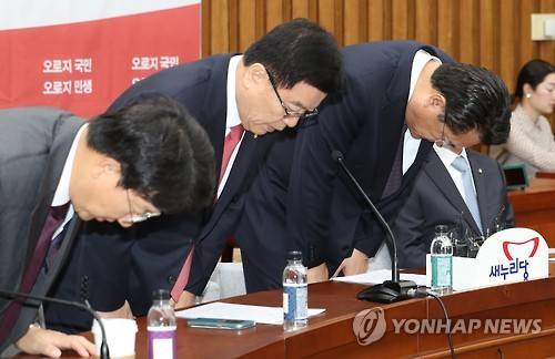 (서울=연합뉴스) 현혜란 기자 = 새누리당은 4일 이른바 '최순실 국정개입 파문'과 관련, "이 모든 사태는 대통령의 책임이고 잘못이다. 그리고 새누리당의 책임이고 잘못"이라고 사과했다.