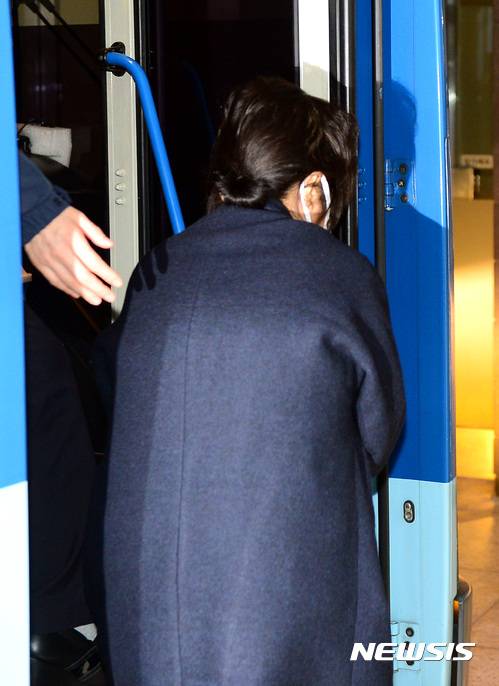 직권남용 등 혐의로 구속된 ‘청와대 비선실세’ 최순실 씨가 조사를 받기 위해 6일 오전 서울 서초구 서울중앙지검에 도착, 호송차에서 고개를 돌리고 등을 보이며 내리고 있다. 2016.11.06. <저작권자ⓒ 공감언론 뉴시스통신사.< p> 저작권자ⓒ>