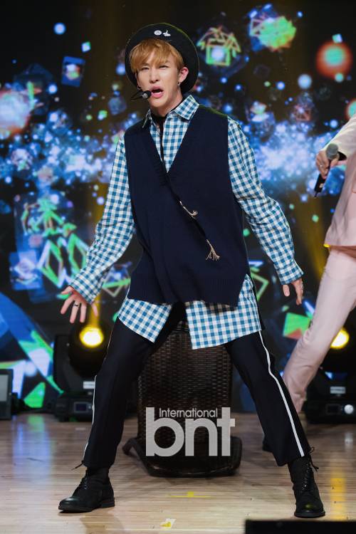그룹 탑독(ToppDogg) 첫 번째 정규앨범 ‘First Street’ 발매기념 쇼케이스가 7일 오전 서울 강남구 첨당동 일지아트홀에서 열렸다. 탑독 비주가 멋진 무대를 선보이고 있다. 이번 ‘First Street’에는 타이틀곡 ‘비가 와서 그래’를 포함한 10곡이 실려있다.