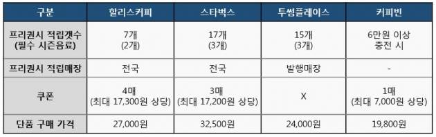 단, 프리퀀시 이벤트를 진행하는 할리스커피와 스타벅스의 경우에는 전 매장에서 적립이 가능하지만, 투썸플레이스의 경우 스탬프 카드를 발급받은 매장에서만 적립하도록 제한을 뒀다.