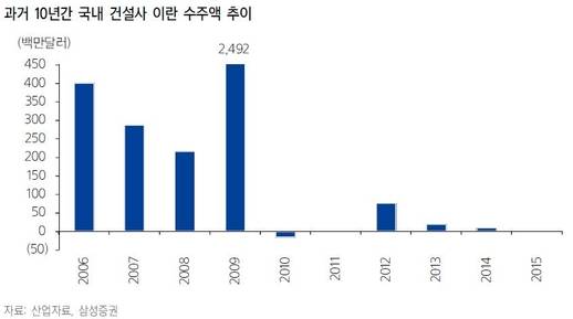올해 이란에서 수주한 내용을 보면 해양수산부의 ‘샤히드라자이항 항만개발 타당성 조사 및 기본계획 검토 용역’과 대한무역투자진흥공사의 ‘2016 테헤란 한국우수상품전 부스 설치’ 공사 등 2건으로 제대로 된 건설 수주와는 거리가 멀다.