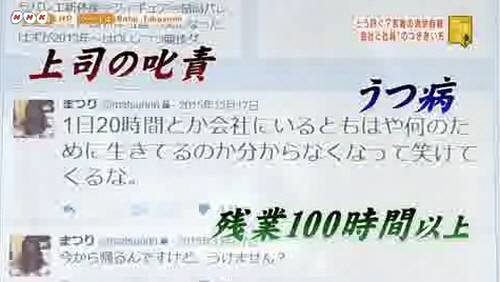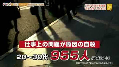 NHK는 5일 방송에서 젊은 세대의 과로 자살문제를 다루며 시대는 변했지만 과거의 일하는 방식이 지금도 계속돼 문제를 일으킨다고 지적했다.