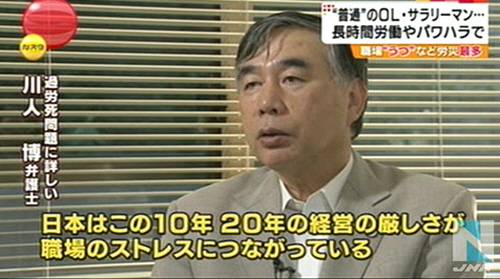 | 변호사 가와히도는 "일본은 10년 20년전 경영의 엄격함이 직장 내 스트레스와 연결되어 있다"고 강조했다. (사진= JNN 방송화면 캡처) |