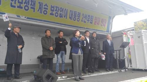 주옥순 엄마부대봉사단 대표는 “박 대통령은 부정도 없고 애국 세력으로 나라를 지키려고 노력한 사람”이라며 “대한민국이 좌파 세력 때문에 바람 앞에 등불이 되고 있다”고 밝혔다.
