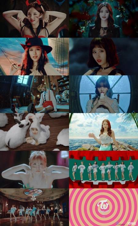 특히 트와이스의 'TT' 뮤직비디오에선 핼러윈을 연상케 하는 배경으로, 마녀, 팅커벨, 인어공주, 배트걸 등 핼러윈 복장으로 연출한 모습이 인상적이다.