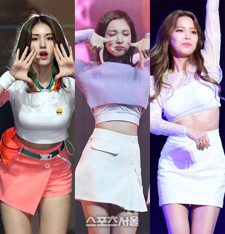 트와이스를 비롯해 아이오아이(I.O.I), 마마무 등 '핫한' 걸그룹 무대의상에 이목이 집중되고 있다. 요즘 걸그룹 무대의상에는 올 시즌 트렌드룩으로 손꼽힌 스포티즘, 매년 사랑받는 화이트 시스루 무대의상으로 다양한 매력을 뽐내며 삼촌 팬들의 마음을 설레게 하는 동시에 여성 팬들의 부러움을 자아내고 있다. 타이틀곡 '너무너무너무'로 돌아온 아이오아이는 데뷔곡 '드림걸즈'에서 선보인 스포티룩과는 다른 콘셉트로 경쾌하면서도 비글 매력을 뽐냈다.