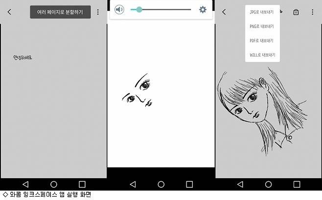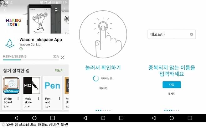 먼저 전용 애플리케이션을 내려받아야 한다. 구글플레이 또는 앱스토어에 들어가서 '와콤 잉크스페이스(Wacom Inkspace)'를 검색해 보자. 네모난 종이 위에 물방울이 떨어지는 모습을 형상화한 아이콘이 보인다면 그 앱이 맞다.