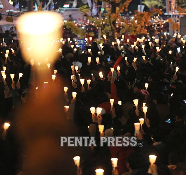 [포토] 촛불 들고 평화시위 - 광화문 대통령 하야 요구 집회 (3)