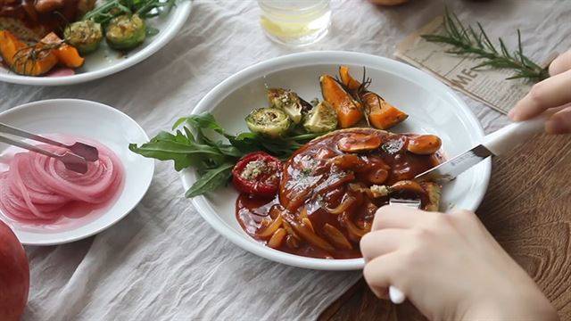 step 6. 접시에 두부스테이크를 담고 소스를 올린 후 기호에 따라 곁들임 채소를 더해 즐겨주세요.