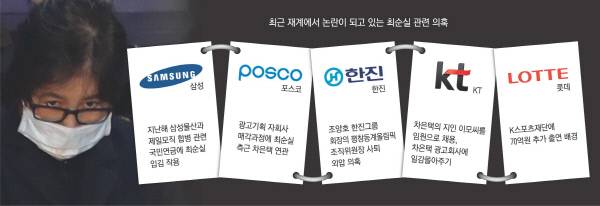 일부 기업의 경우 명운을 가르는 중대사에도 최씨가 개입했다는 의혹이 나온다. 의혹은 기업 총수의 입에서 구체화됐다. 조양호 한진그룹 회장은 최씨의 입김으로 평창 동계올림픽 조직위원장에서 경질됐다는 보도에 대해 “기사에 나온 것이 90% 맞다”고 말했다. K스포츠재단 출범을 앞두고 조 회장과 한진은 출연금 지원을 거부한 것으로 알려졌다.