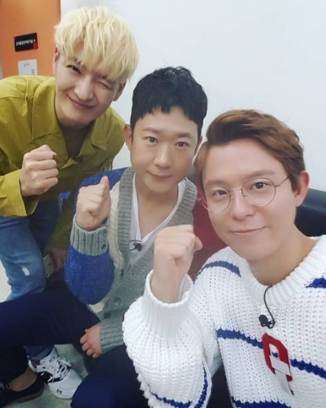 사진 속에는 토니안과 천명훈, 손호영이 주먹을 불끈 쥐고 파이팅 포즈를 취하고 있다. 1세대 아이돌들의 훈훈한 모습이 인상적이다.