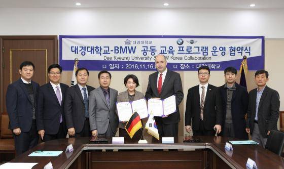 대경대학교는 일자리 창출을 유도하는 사회 맞춤형 교과과정 운영을 위해 세계 처음으로 BMW코리아와 16일 오전 대학 본관동에서 업무협약(MOU)을 체결했다고 밝혔다.