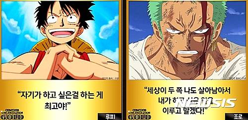 “자기가 하고 싶은걸 하는 게 최고야!”, “세상이 두 쪽 나도 살아남아서 내가 하고 싶은 일을 이루고 말겠다!”와 같이 하고 싶은 일을 이루고자 하는 의지가 담긴 루피와 조로의 대사는 수험생들에게도 큰 격려가 되고 있어 눈길을 끌고 있다.