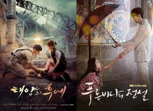 ‘태양의 후예’와 ‘푸른바다의 전설’은 공식 포스터를 통해 드라마의 전반적인 스토리를 소개했다. 흥미롭게도 두 남녀의 관계가 전환되는 순간을 포착하고 있다.