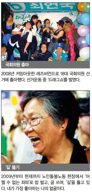 최현숙이 노인들의 구술사를 집필하게 된 동기는 그의 범상치 않은 이력에서 출발한다. 1957년 전북 남원 출생. 덕성여대 가정학과를 졸업하고 아이 둘을 키우며 평범한 주부로 살다가 30대 초반부터 사회운동에 참여하기 시작했다. 처음엔 동네 성당에서 가난한 병자나 소년소녀가장을 돌보는 일을 하다가, 천주교정의구현전국연합에 발을 디디게 되었고 2000년 이후로는 진보정당 운동에 본격적으로 뛰어들었다. 2004년 47살의 나이에 레즈비언으로 커밍아웃을 하면서 이혼하고 2008년 4월 총선에서 서울 종로에 진보신당 후보로 출마했다. 결과는 예상대로 참혹한 실패였지만, 성소수자의 존재를 정치적으로 드러내는 것에 큰 의미를 두었다.