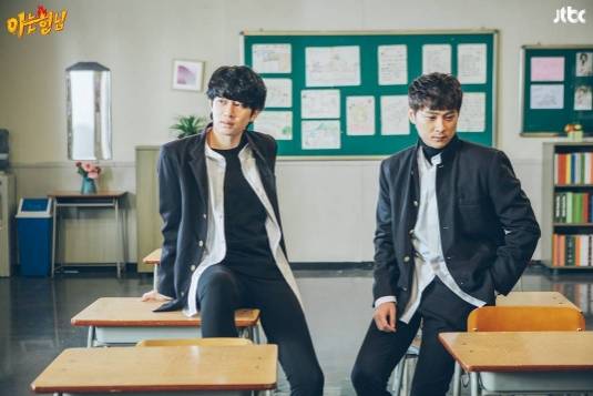 사진 속에는 진지한 표정으로 형님 학교 책상에 앉아 있는 김희철, 민경훈의 모습이 담겨있다. '아는 형님' 속 모습과는 사뭇 다른 이들의 프로페셔널한 자태가 인상적이다.